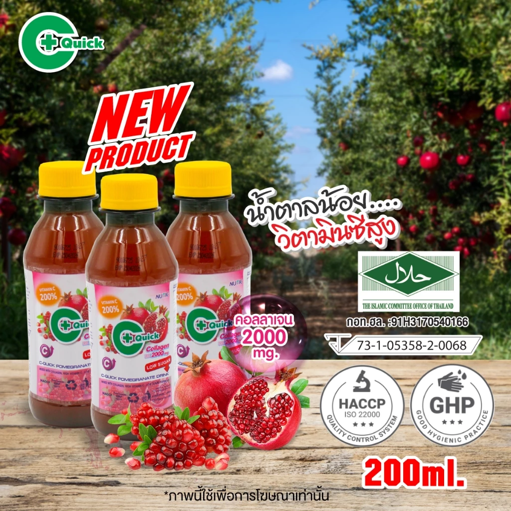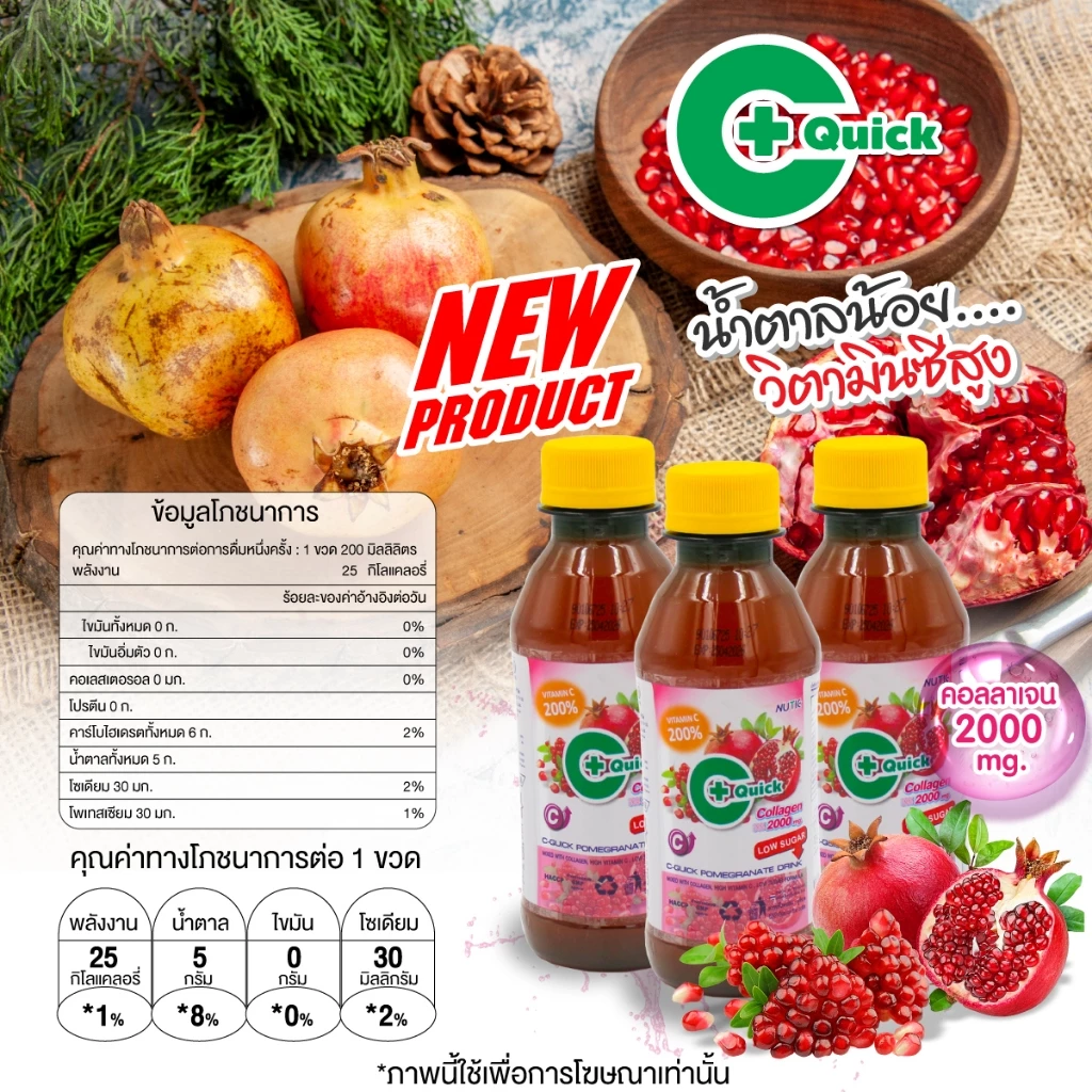 ชื่อสินค้า : C-Quick น้ำผลไม้รสทับทิม Pomegranate วิตามินซีสูง ตรา ซี-ควิค